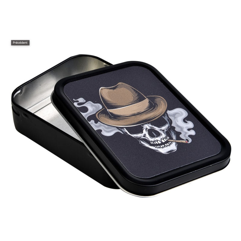 The design of the SMOKING SKULL METAL TIN is a bold blend of rock aesthetics and mystery. The smoking skull flocked to the black lid gives this box a unique character. Whether you're a fan of gangster culture, a fan of rock'n'roll, or simply someone who appreciates originality, this box will win you over. Its distinctive style is sure to catch the eye and arouse curiosity.