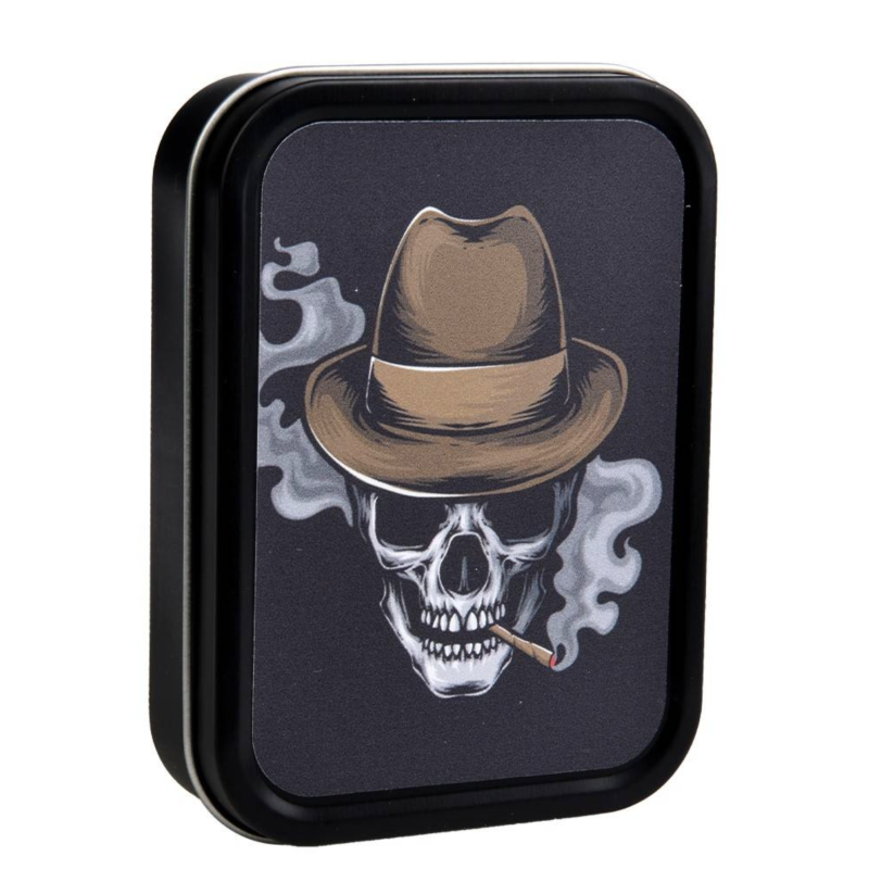 In short, the SMOKING SKULL METAL BOX is much more than just a smoking accessory. It's a unique piece that combines rebellious style, mystery, solid construction and unrivalled hermeticity. If you're looking for an accessory that reflects your bold personality while preserving your valuables, this metal box is a must-have. Make a style statement with this distinctive SMOKING SKULL METAL TIN.